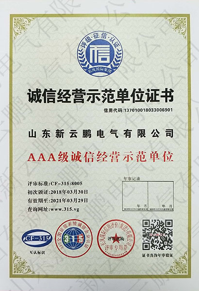 誠(chéng)信經(jīng)營(yíng)示范單位證書(shū)